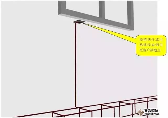 注:设计要求接地的幕墙金属框架和建筑物的金属门窗,应就近与接地干线连接可靠,连接处不同金属间应有防电化腐蚀措施。