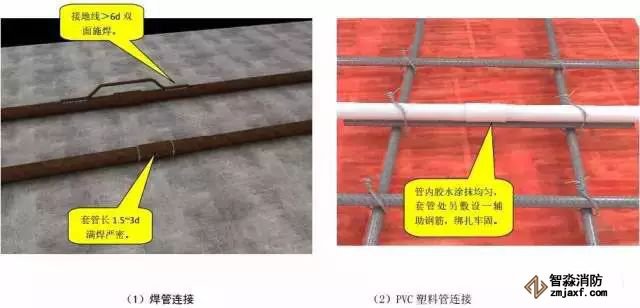 注:金属导管严禁对口熔焊连接;镀锌和壁厚小于等于 2mm 的钢导管不得套管熔焊连接。
