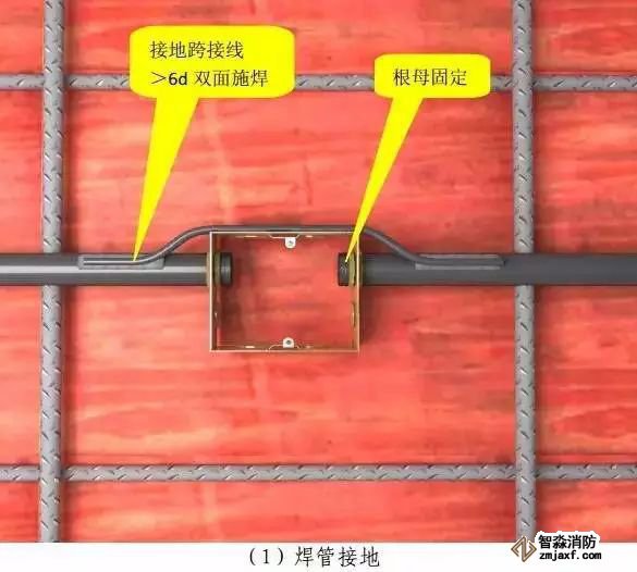 注:1、普通钢导管接地线采用跨焊接方法;
