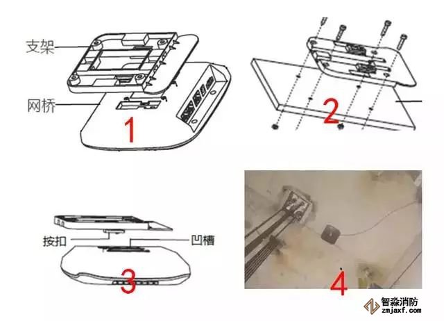 2、机房端安装在井道的顶部端,正面朝下,使用吸顶方式进行固定,步骤如下