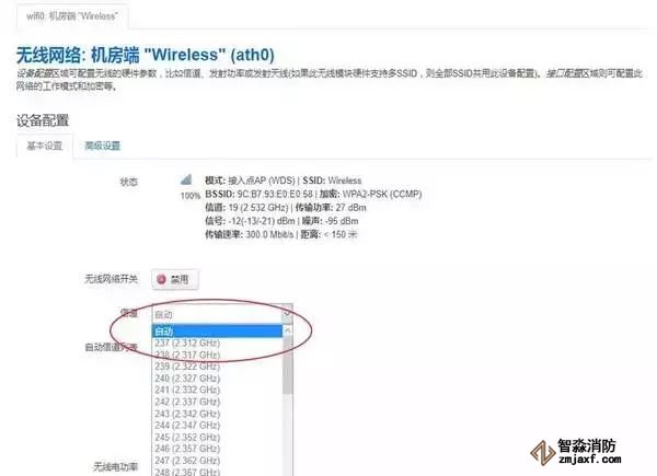 1.电脑直连接收端网桥lan口(或者poe模块的lan口),ping发送端IP看能否ping通,如果ping不通说明网桥间未建立连接。检查网桥是否正常供电,如果网桥都是正常工作状态,检查网桥配置,查看SSID,信道(频率)设置是否一致(如下图所示) ,两端设备的信道和SSID一定要相同。另外,当同一局域网内有多对网桥时,要修改每对网桥的ip地址。