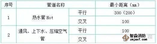 4.暗配电线管路与其它管道最小距离,如下表所示: