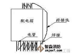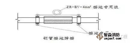 4.钢管丝扣连接时在管接头的两端装设专用接地跨接线,如图。