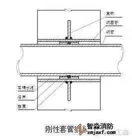 1.刚性套管安装:主体结构钢筋绑扎好后,按照给排水施工图标高几何尺寸找准位置,然后将套管置于钢筋中,焊接在钢筋网中,如果需气割钢筋安装的,安装后必须用加强筋加固,并做好套管的防堵工作。刚性套管安装如图所示: