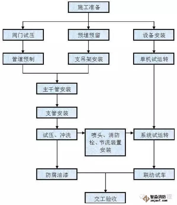 ⑴干管安装,≤DN75的干管采用套丝连接安装,焊接和丝接技术数据与给水管相同,焊接口和埋地部分的管理作防腐处理。