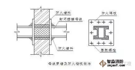7.封闭插接母线在穿过墙及防火楼板时,在母线周围填充防火堵料,具体做法见上图。