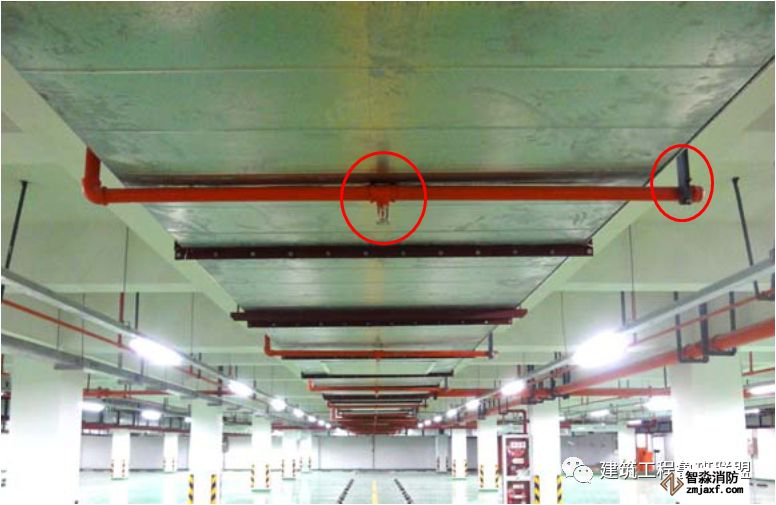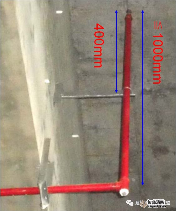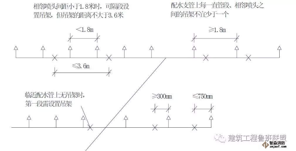 2、当喷淋支管高度大于1000mm时,应设横向加强支架;末端支架与喷头之间的距离为400mm