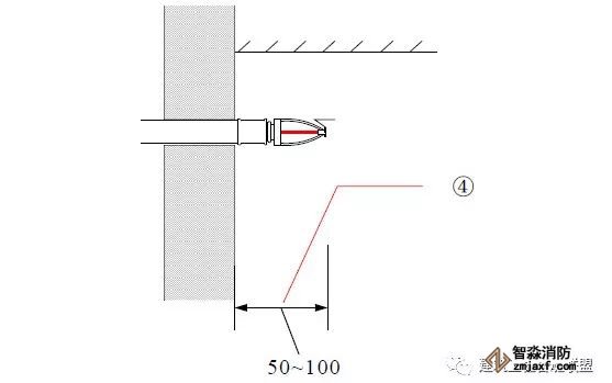 边墙型喷头安装离墙距离为50-100mm