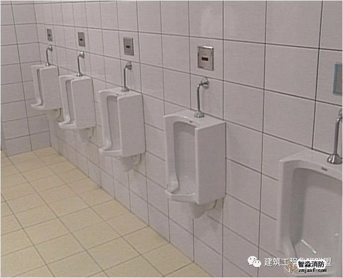 小便器、感应器安装居中,高度一致,地面砖与墙面砖对缝