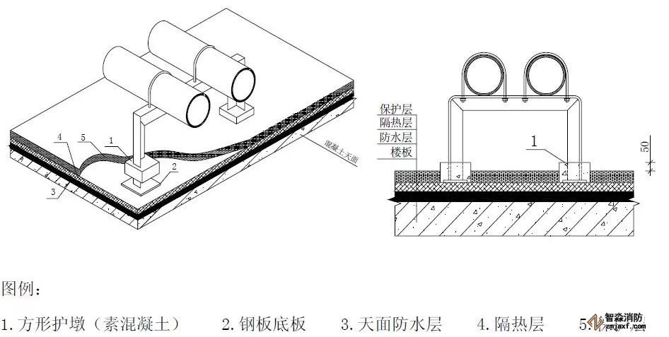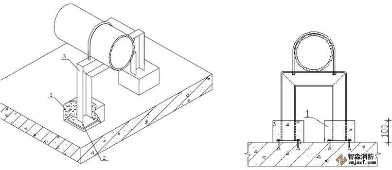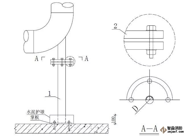柱管法兰盘距离地面完成面小于等于一米,管道直径为DN100?150时,柱管为DN50;管道直径为DN200?250 时,柱管为DN65mm;当设计另有减振要求时,需另考虑设置减振等