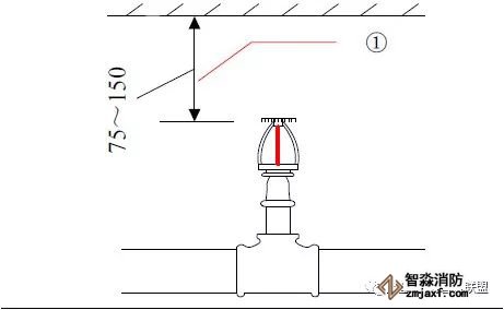 1、直立型喷头安装距楼板顶部距离为100mm