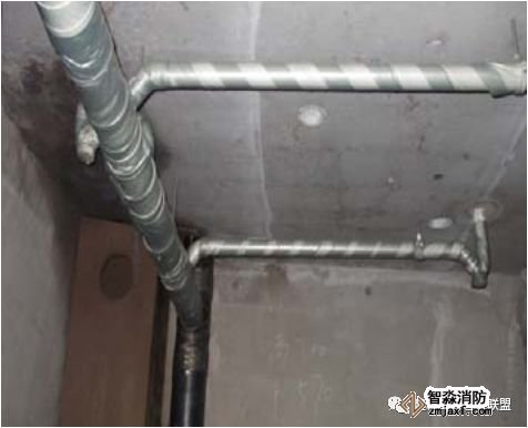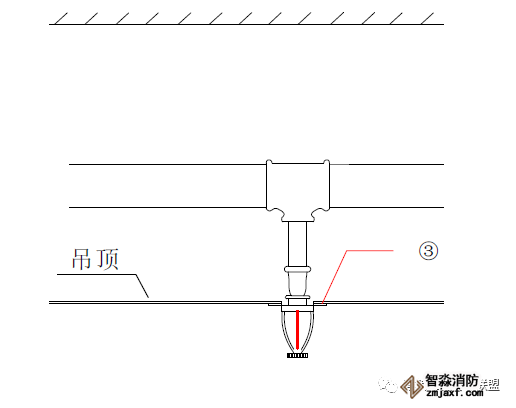 2、有吊顶的下垂型喷头安装喷头根部应与吊顶平齐;为避免定位不准,可在吊顶龙骨标高确定后再安装下喷支管;下喷头与三通之间的短管长度不宜超过150mm