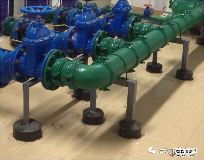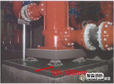 2、立式水泵不得采用弹簧减震器;大型立式水泵最好采用稳定性好的橡胶减震垫;多台立式泵可采取组合机组安装,增加水泵的整体稳定性