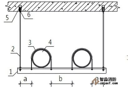 1.支架横担 2.镀锌螺杆 3.管码 4.管道 5.顶爆螺栓 6.紧固螺栓