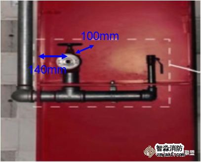 阀门中心距箱侧面料140mm,距箱后内表面为100mm,允许偏差±5mm;消火栓箱体安装的垂直度偏差≤3mm