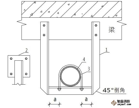 喷淋管道末端应采用梯形防晃支架