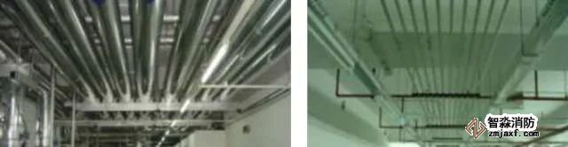 各种机房,如空调机、水泵房、锅炉房、配电房、智能化控制用房等,是最能体现工艺水平的部位。各种管线、设备布置是否合理有序,直接影响设备运行,设备功能正常发挥,安装工艺水平、观感效果。另外与土建结构、装饰必须共同配合,共同策划,多种支吊架设置的安全性、合理性,工艺管线走向的美观、合理性,千万不要出现为就美观而影响功能。要考虑设备的标高方位与管线布置相互配合,既满足功能要求,又满足美观要求,两者兼顾,不要顾此失彼。各种油漆、保温层、涂料的颜色,各种管线设备的颜色、标识、无疑也将给观感效果带来极大的影响,也必须注意策划。