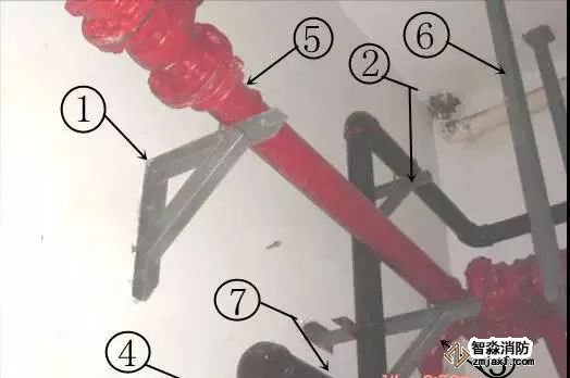 ②③④在管道转弯处,三通处安装支吊架,位置准确合理。