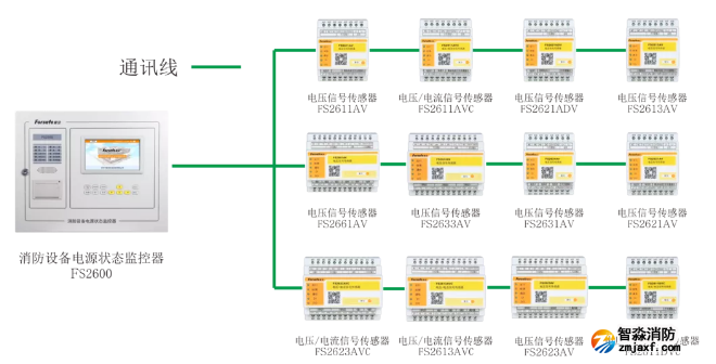 FS2600系列赋安乐鱼在线(中国)设备电源监控系统产品接线图
