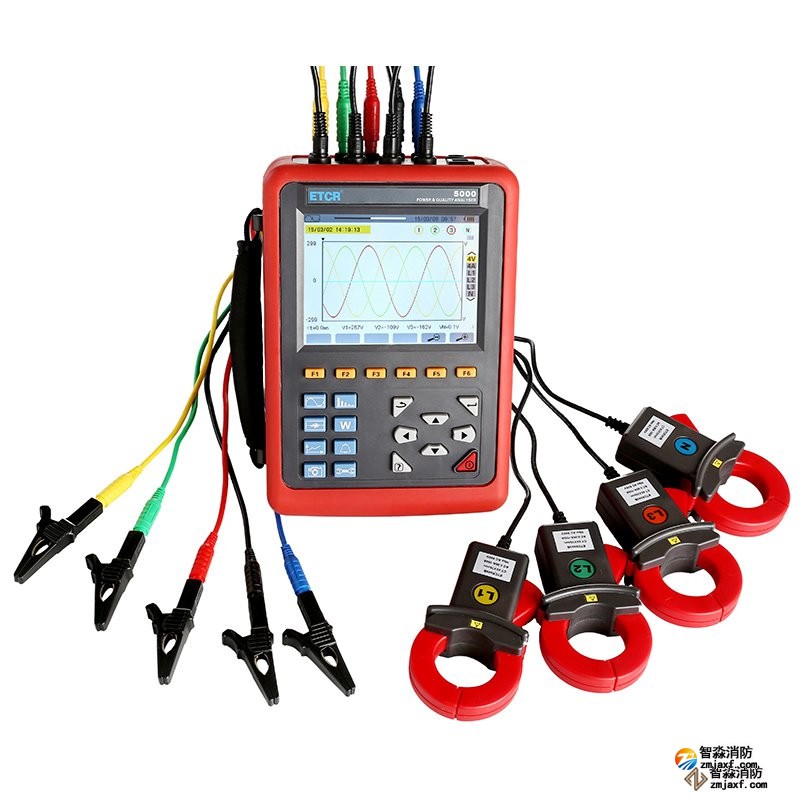 ETCR5000电能质量分析仪是我公司精心研制的一款专为现场测试的三相、多功能、智能化、人机操作简洁的综合型测试仪器。具有容易使用,超大液晶彩屏显示,高分辨率,中英文双语操作界面,防振结构外壳等特点。可同时测量4路电流(ABC三相及中性线电流),4路电压(ABC三相电压及中性线对地电压)、电流电压的峰值、一段时间内的蕞大蕞小值、三相不平衡度、短时电压闪变、变压器K因数、有功功率、无功功率、视在功率、功率因数、位移功率因数、有功电能、无功电能、视在电能、谐波比、总谐波失真度等;显示电流电压的实时波形、相量图、谐波比柱形图;动态捕捉电压电流瞬时变化,监测启动电流,监测各电力参数并生成告警列表,长时间记录测试数据并生成趋势曲线图等功能。