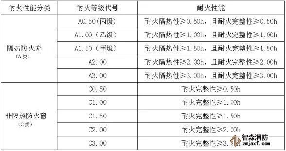 注1:A类防火窗是指隔热防火窗,在规定时间内,能同时满足耐火隔热性和耐火完整性要求。C类防火窗是指非隔热防火窗,在规定时间内,能满足耐火完整性要求。