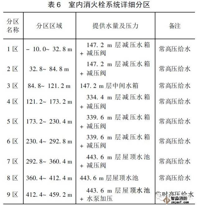室内消火栓系统详细分区如下表6,系统图见图5。