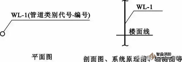 (3) 系统图上对各楼层标高都有注明,识读时可据此分清管路是属于哪一层的。