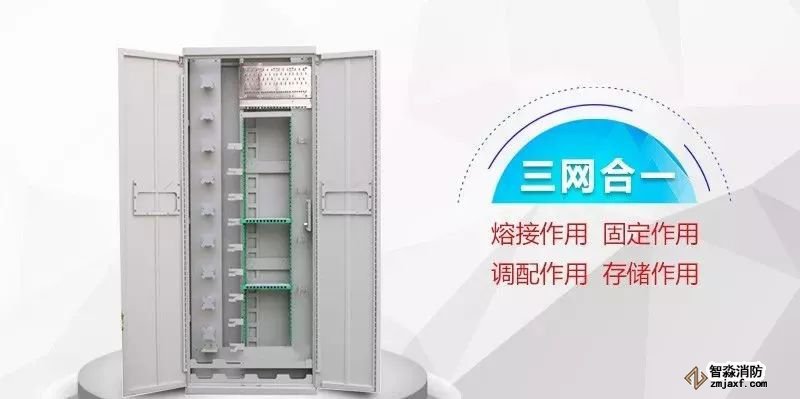 三网合一光纤配线架可将光缆中引出的光纤与尾缆熔接后,将多余的光纤进行盘绕储存,并对熔接接头进行保护作用。