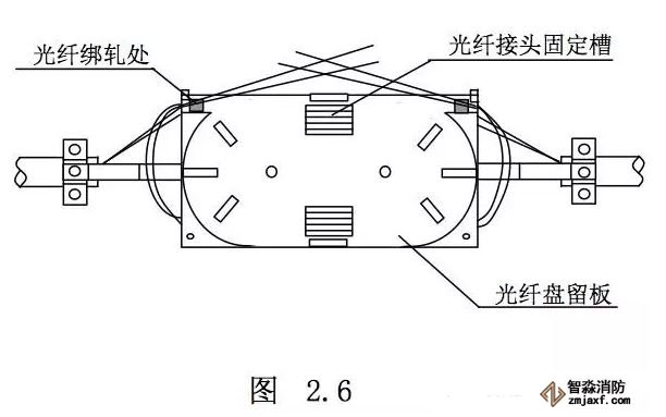 2.5.5-4用清洗剂、酒精棉纸擦净光纤上油膏,把光纤放置在盘留板的引入槽内,用绑扎带绑扎固定。见图2.6。