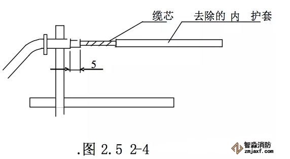 2.5.4-1在内护套切口处保留加强芯60mm长,其余部分剪去,见图2.5.4-1。