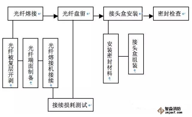 光纤的接续采用高精度的新型全自动光纤熔接机进行电弧熔。通过光时域反射仪进行光纤熔接质量监测,对整个接续过程进行有效的质量控制。因此光纤熔接、盘留、监测、接头盒的密封是光纤接续的关键。光纤接续方法是电弧熔接法,光纤自身熔化合为一体,无须外界物质,接续损耗小,长期稳定,可靠性好。采用OTDR(光时域反射仪)进行现场接续损耗监测。接头盒内增加了光纤束管预留盘工艺,通过光纤束管的预留来抵消热胀冷缩时光缆的伸缩给光缆接头带来的影响,从而确保了整个光缆接头的稳定性和传输质量。光纤接续后将A、B两侧光纤同时压花盘留,盘留圈数为偶数,以达到相互抵消阻力的作用,从根本上解决扭力对光纤接头的影响。