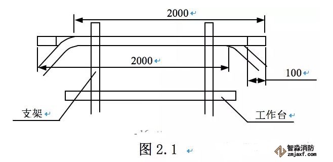 2.5.1-3把已理直的光缆架设在工作台两侧的固定支架上。