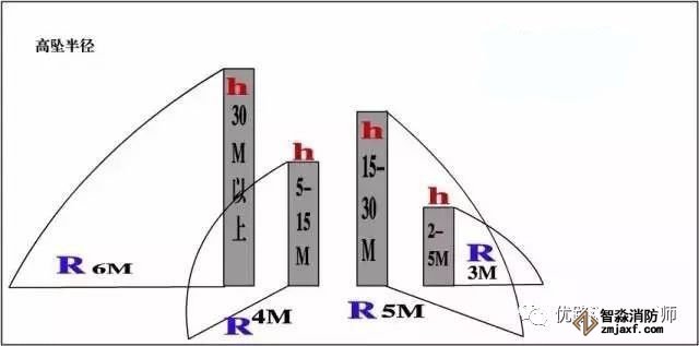 主要依据:可能坠落范围半径的规定 R根据hi规定如下:a)当2m≤hb≤5m时,R为3m;b)当5m<hb≤15m时,R为4m;c)当15m<hb≤30m时,R为5m;d)hb>30m时,R为6m.《高处作业分级》GB/T3608-2008