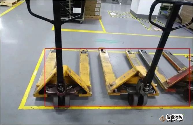 这个相信许多企业都有吧,看看人家的手动叉车是怎么停放的。▼
