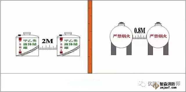 主要依据:甲乙丙类液体储罐成组布置时,组内储罐的布置不应超过两排,甲乙类液体立式储罐之间的防火间距不应小于2M,卧式储罐之间的防火间距不应小于0.8M。《建筑设计防火规范》(GB50016-2014)4.2.3