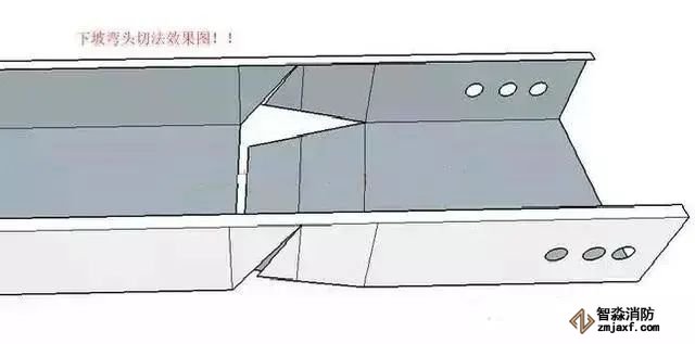 有上坡弯头就有下坡弯头,我们来看下下坡弯头的切法效果图!!!如下图!