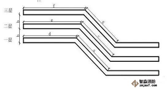 式中:b为层间距,a为第一层桥架两个弯头的间距