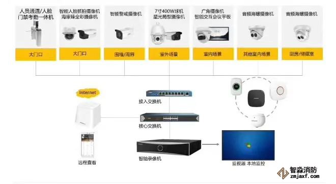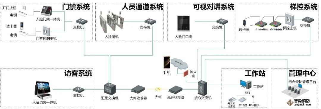 2、安防系统拓扑图,包含了门禁及监控系统