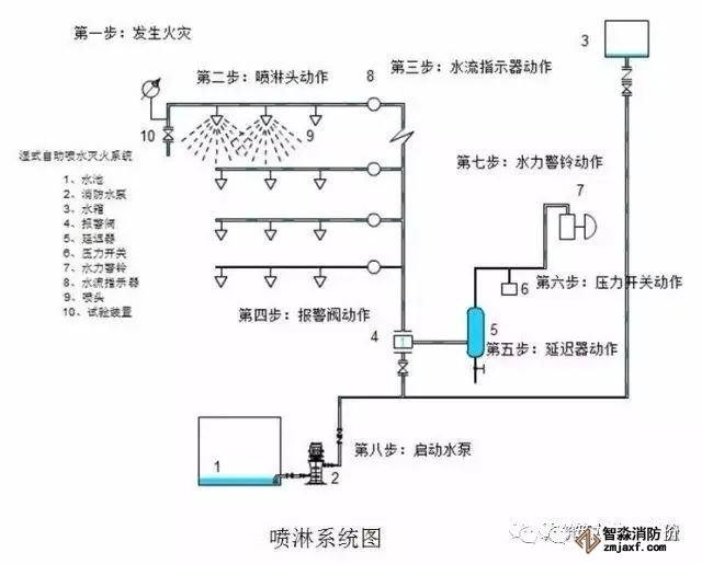 2. 湿式报警阀与水流指示有些不同,如果喷淋管道中如果水在流动,管道原有的静压会发生变化,会激发水力警铃报警(它的原理可以参看一些阀门说明书),且压力开关动作,从而来启动喷淋水泵。