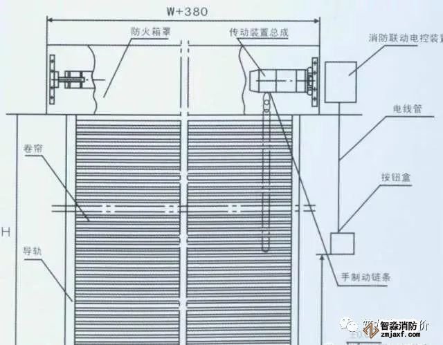 防火卷帘帘面通过传动装置和控制系统达到卷帘的升降。起到防火、隔火作用。