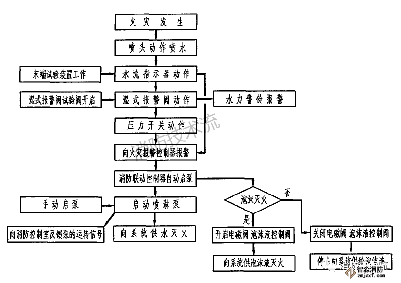 由喷头、报警阀组、水流报警装置(水流指示器或压力开关)等组件,以及管道、泡沫液与水供给设施组成。