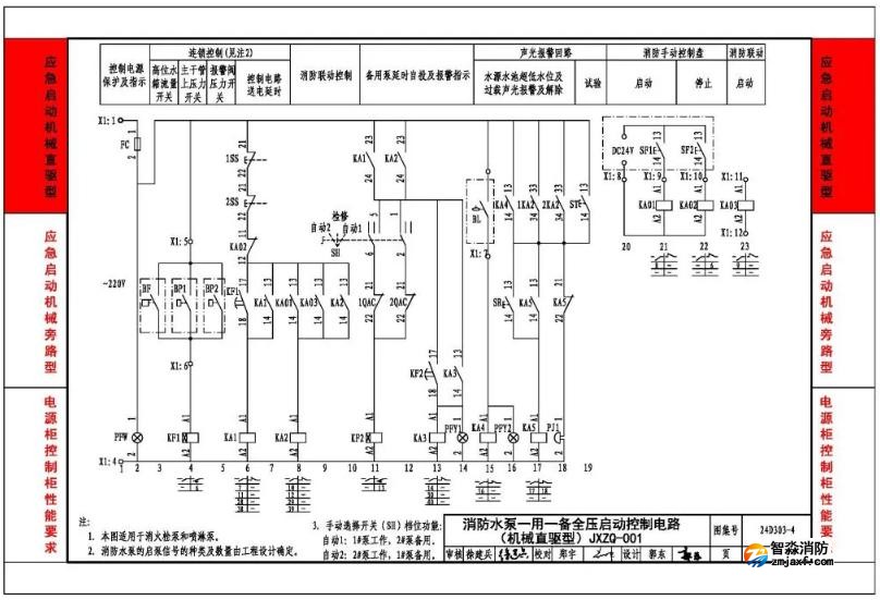 国家建筑标准设计24D303-4《乐鱼在线(中国)水泵机械应急启泵控制》是基于国家标准《乐鱼在线(中国)给水及消火栓系统技术规范》GB 50974-2014第11.0.12条:乐鱼在线(中国)水泵控制柜应设置机械应急启泵功能,并应保证在控制柜内的控制线路发生故障时由有管理权限的人员在紧急时启动乐鱼在线(中国)水泵。机械应急启泵时,应确保乐鱼在线(中国)水泵在报警后5.0min内正常工作。本条款对乐鱼在线(中国)水泵机械应急启泵的控制有强制性要求。另外工程建设全文强制性工程建设规范《乐鱼在线(中国)设施通用规范》GB 55036-2022第3.0.12条第3款:乐鱼在线(中国)水泵控制柜应具有机械应急启泵功能,且机械应急启泵时,乐鱼在线(中国)水泵应能在接受火警后5min内进入正常运行状态。本条款对乐鱼在线(中国)水泵机械应急启泵列入到技术法规中。