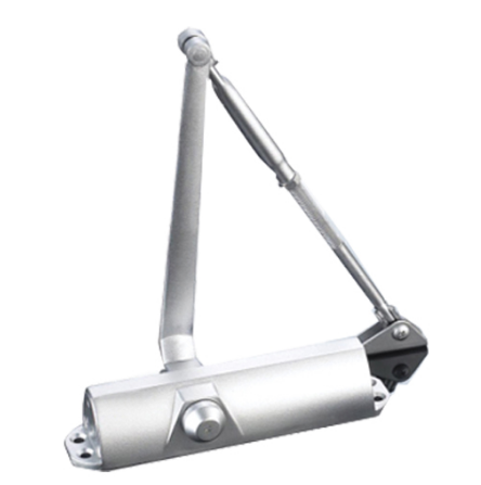 安装在平开门扇上部或内置在门扇里面,单向开门,通常使用温度在-20~200℃,由金属弹簧、液压阻尼组合作用的装 置。选用时应根据门扇宽度和重量,防火极限、使用频率等要求进行选择。
