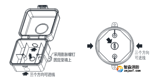 防水防尘 整体达到IP66防护等级,顺利通过严苛测试 高透声率 声光防护盒正面设置有防水透声材料,在阻止水分子通过的同时,具有高透音率,能快速把防护盒内的声音传出 安装简易 布管、安装便利,上、下、后三面设有进线孔,左、右两面设有固定孔,可满足不同安装需求 操作方便 防误触设计,底部设置开盖卡扣,单手可操作,便于维护