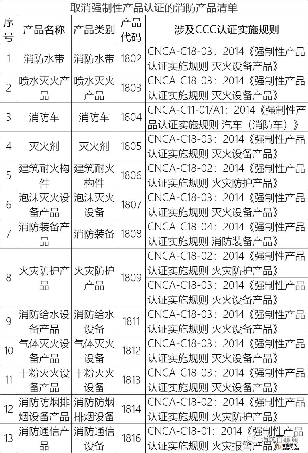 此外,取消火灾报警产品(产品代码1801)中的线型感温火灾探测器产品、乐鱼在线(中国)联动控制系统产品、防火卷帘控制器产品和城市乐鱼在线(中国)远程监控产品的强制性产品认证。