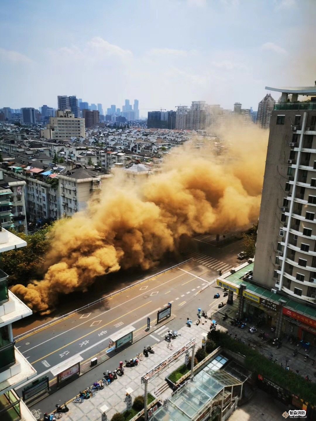 路面塌陷后,冒出黄色浓烟。随后杭州地铁官方微博也发布消息,称目前现场未发现人员伤亡,周边人员已疏散,相关工作正积极展开。