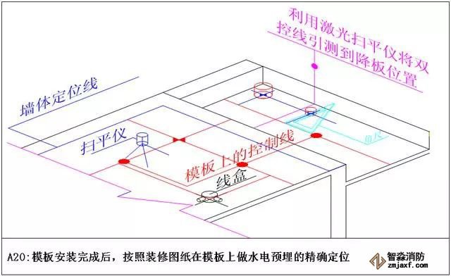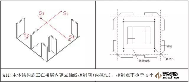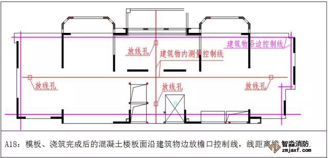 5.4 所有测量控制线必须要标注名称,所有引线必须是从主控线进行引测,引线的传递不大于2次(引线传递要复核)。