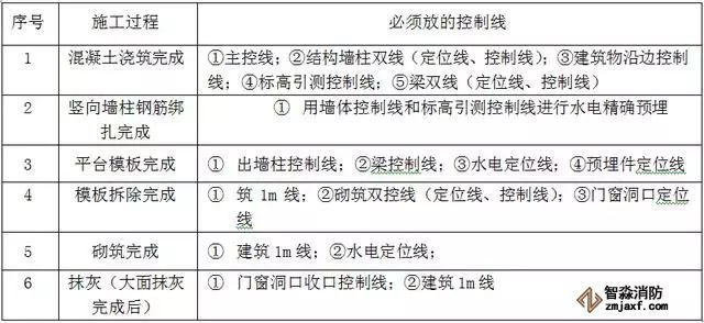 5.5 所有工序施工前必须按照下表要求弹出控制线。
