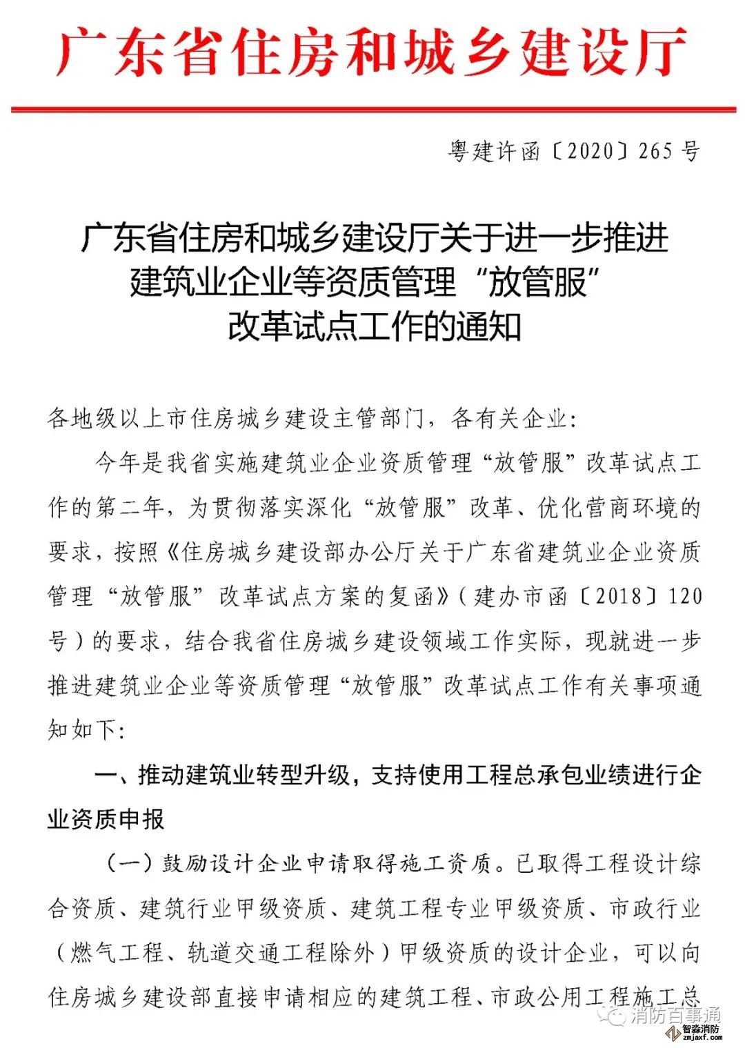 近日,广东省住建厅发布《关于进一步推进建筑业企业等资质管理“放管服”改革试点工作的通知》。