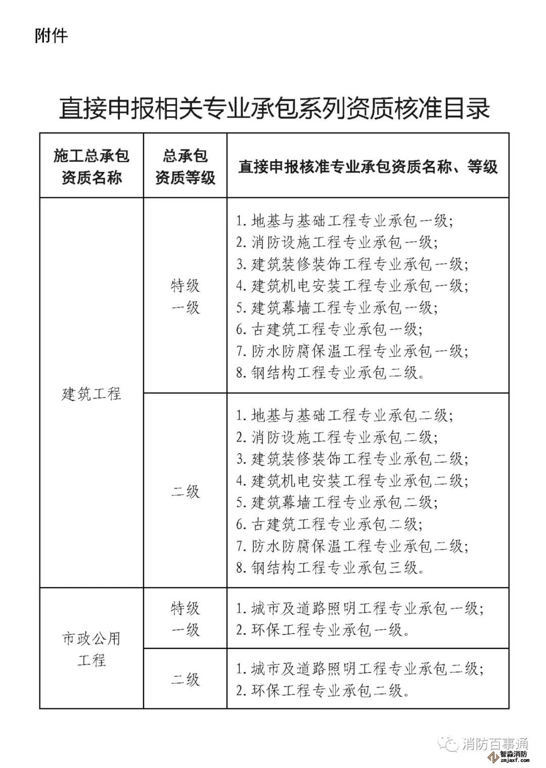 (三)信誉良好的企业直接核准专业承包资质。诚信守法,三年内未发生过质量安全事故、三年内无不良行为记录、具有相关专业技术能力且信用良好,具有一级、二级建筑工程和市政公用工程施工总承包资质的企业,可以申请直接核准相关专业承包资质(详见附件),由省厅和我局按资质许可管理权限直接核准,不再要求企业具备低一等级专业承包资质。申请截至时间为2020年底前。